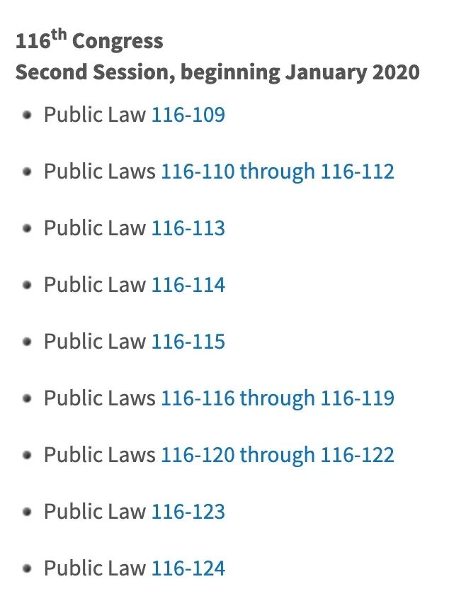 Office)。所以如果你想看2019年国会通过的法案,网上检索Pub.L.116-XXX就可以查找到了。